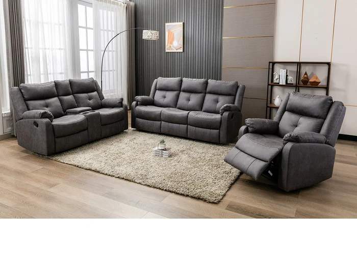 Sit back and relax in style with the twoeazy Casey Fabric Reclining Sofa Collection — designed to bring comfort and practicality into your everyday living space. With its soft faux suede finish and elegant button detailing, this sofa adds a cosy yet modern touch to any room. The twoeazy Casey Three Seater Reclining Sofa is perfect for unwinding, featuring supportive coil-sprung cushions, comfortable backrests, and extra padded armrests. The manual reclining function lets you easily find your ideal position, whether you’re relaxing after work or enjoying a movie night. A standout feature is the drop-down centre panel, which reveals a handy tray — perfect for holding drinks, snacks, or even your phone while you relax. Available in two versatile colours: Chestnut Brown Shadow (Dark Grey) (Please check images and select your preferred option from the menu) Features: Soft ‘easy clean’ faux suede fabric upholstery Supportive coil-sprung seating for lasting comfort Manual reclining function for easy relaxation Extra padded armrests and cosy back support Stylish button detailing for a modern look Drop-down centre tray for added convenience The twoeazy Casey Range also includes sectional sofas, 2-seater recliners with console, and matching reclining armchairs — available in your preferred configuration and colour. Dimensions: Three Seater Recliner: W 203 x D 94 x H 101 cm Seat Height: 48 cm Arm Height: 64 cm Delivery: Your twoeazy Casey Sofa will be delivered within 2–3 weeks.