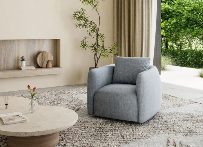 - Stylish tub-style design in modern grey fabric